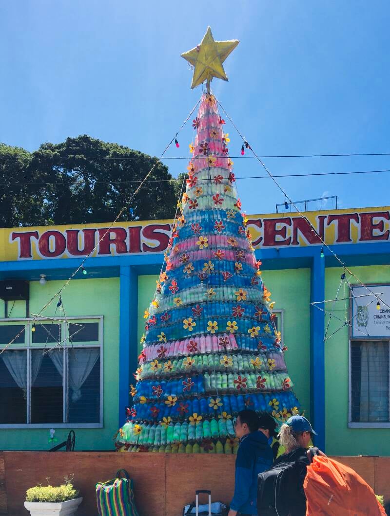 Christmas tree made from reused water bottles at the Dumagette ferry terminal.