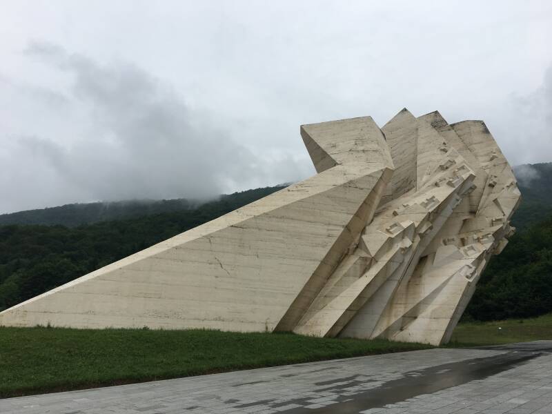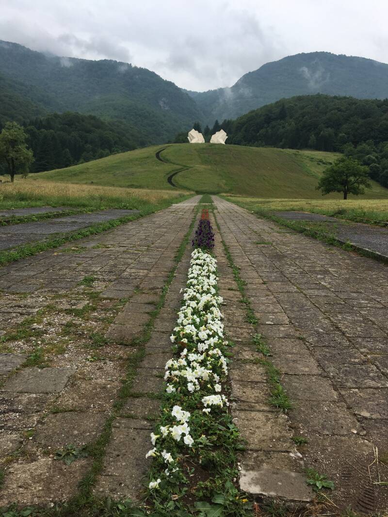 Like the Partisan Cemetery in Mostar, During the Bosnian siege between 1992-1995, all three were partially destroyed and the museum looted; the monument was only saved through lack of sufficient explosive by the Bosnian Serbs. Then in 2018 a landslide came close to destroying it didn’t quite reach the memorial.