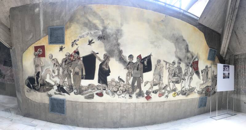 Different views of the Tito mural inside Memorial House of Battle of Sutjesca, by Krsto Hegedusic, recently restored.