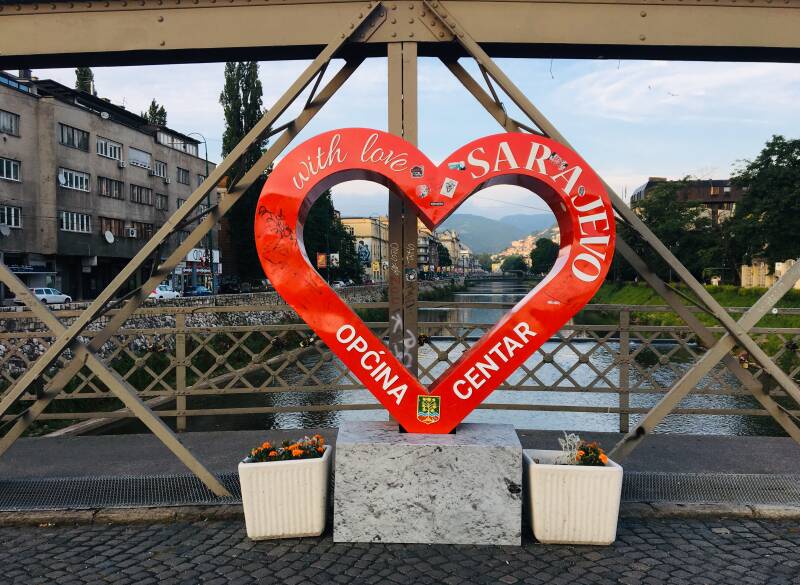 Vrbanja Bridge, better known as the Sarajevo Bridge of Love, where two young lovers were killed trying to escape the Bosnian siege.