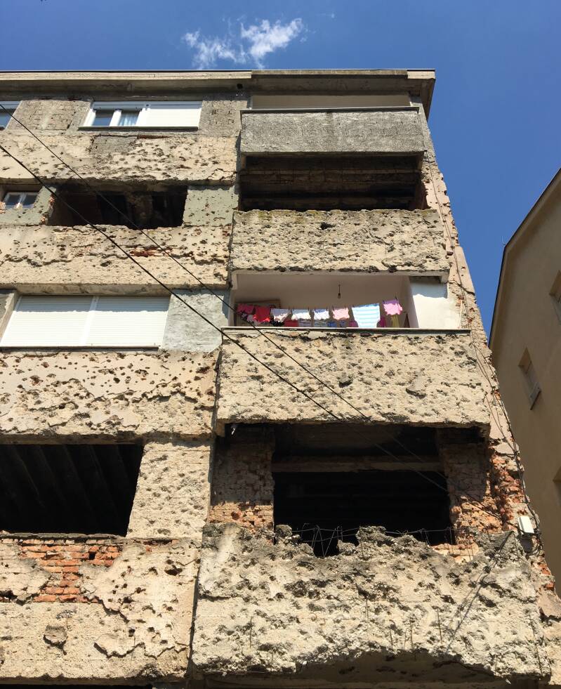 Like in Sarajevo, many of these buildings, even ones that were almost shells, had functioning apartments inside, with modern windows, showing the resilience of the materials used in the communist era.