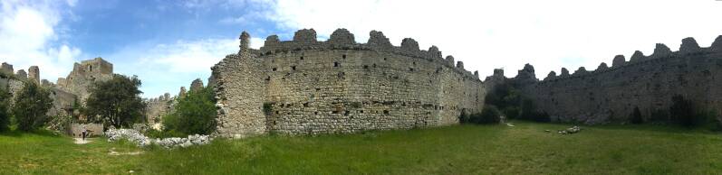 The walls inside Château de Puilaurens (Occitan: lo Castèl de Puèg Laurènç).