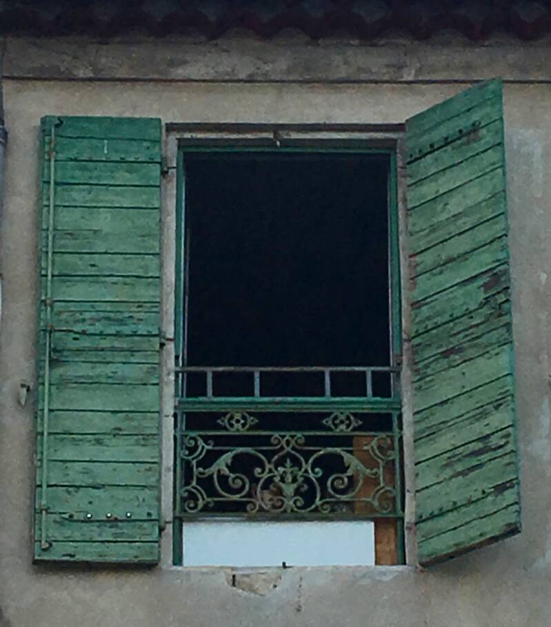 Traditional shutters in the old town of Arles along the Rhone River.